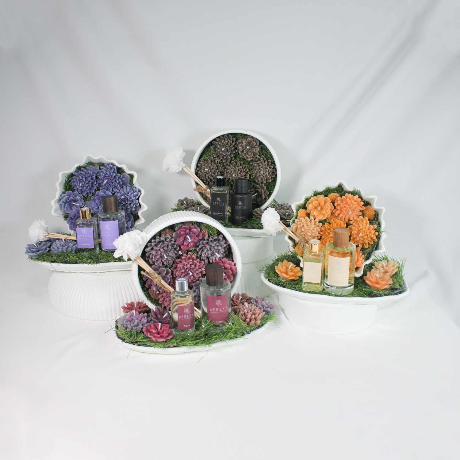 Neqsa Box is an elegantly curated fragrance set designed for stylish and thoughtful gifting, combining decorative candles with a refined scent experience. Includes Afreya Diffusers and Floral Candles, available in Jasmine, Oud, Rose, and Lavender to suit your mood or occasion.
