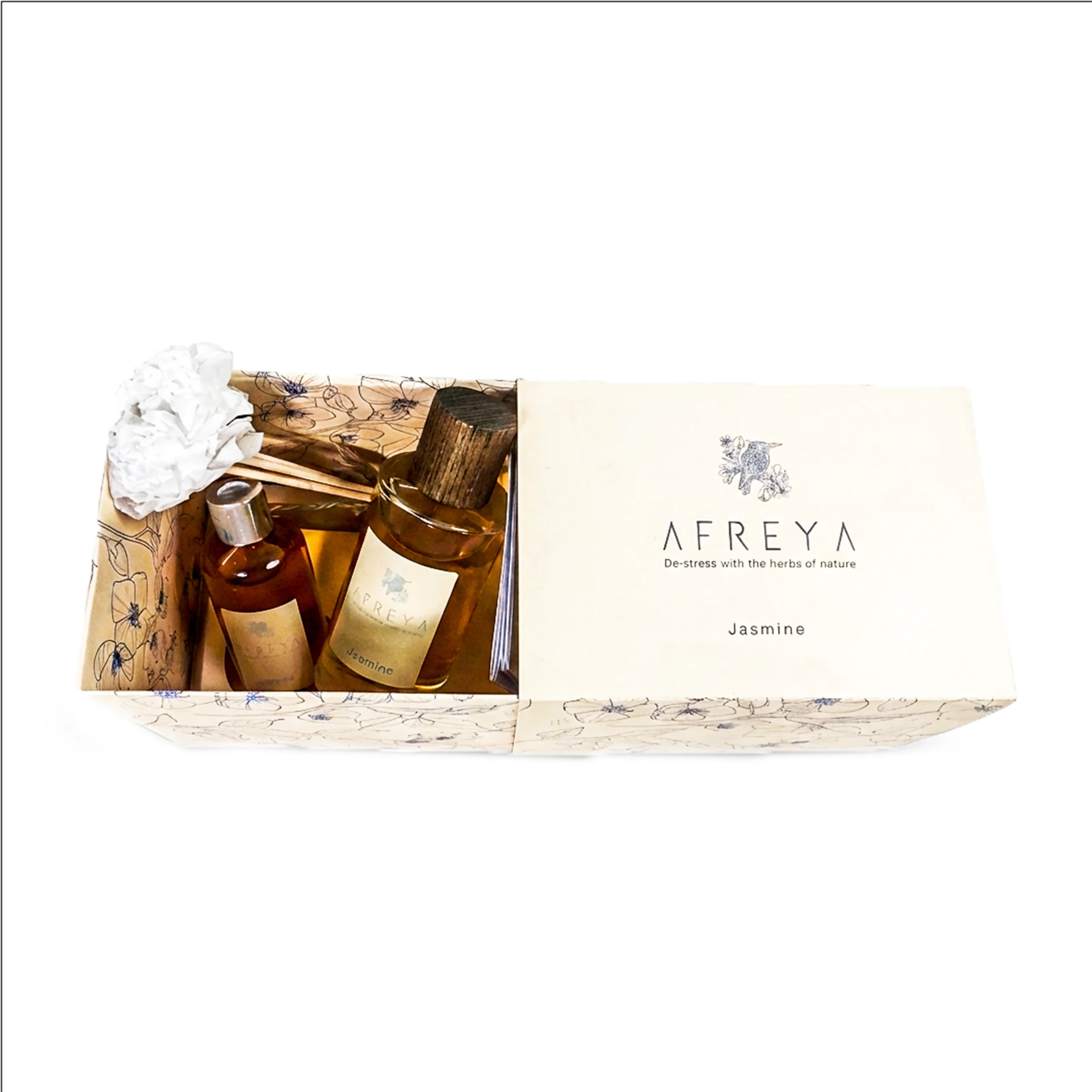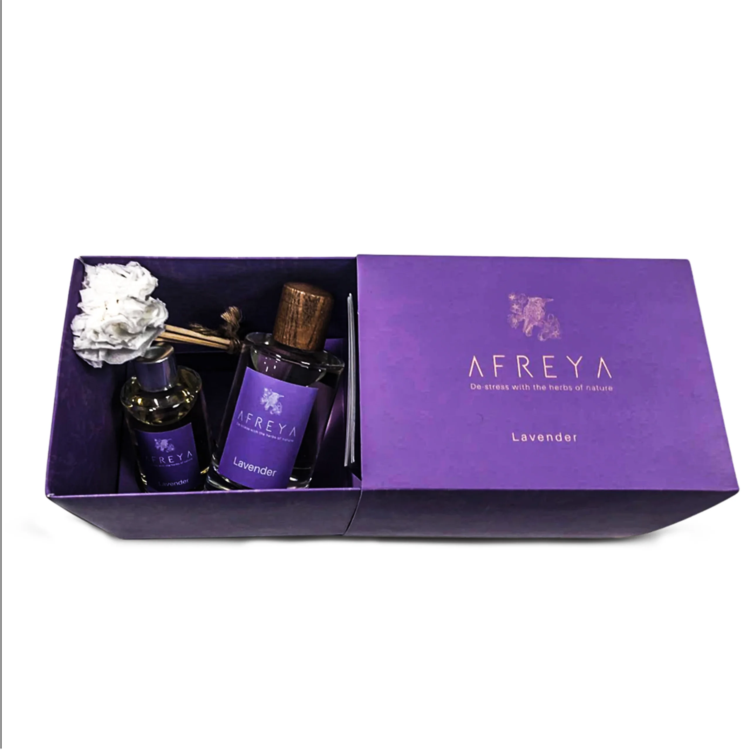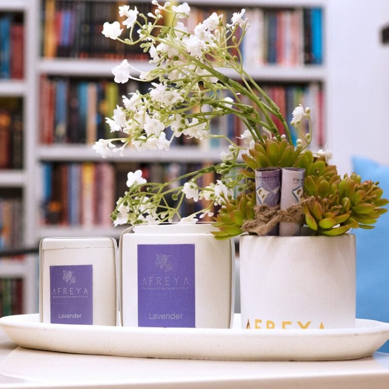 تتضمن معطرات أفريا مع شموع الزهور، ومتوفرة بروائح الياسمين، العود، الورد، واللافندر لتناسب مختلف الأذواق والمناسبات.