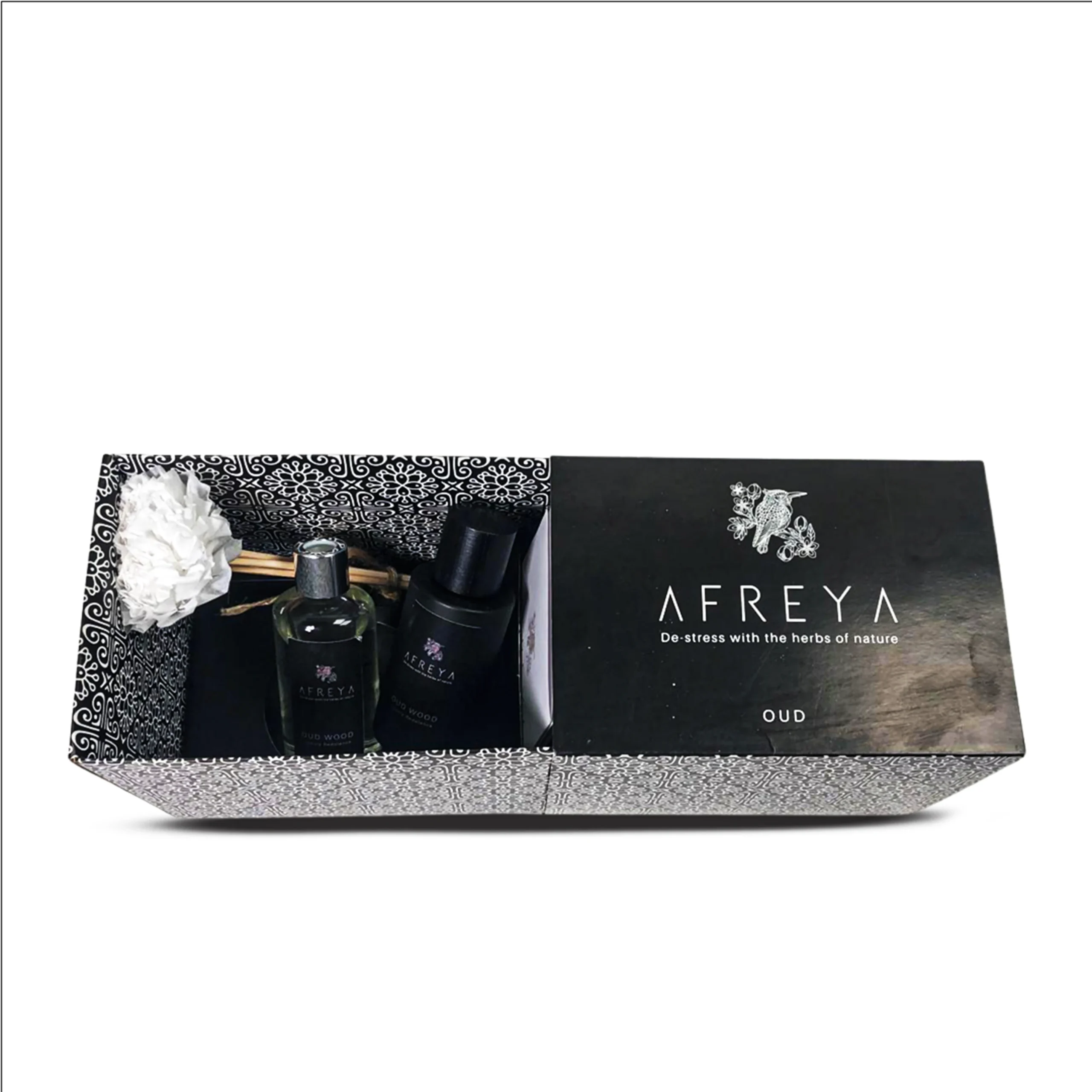 Neqsa Box is an elegantly curated fragrance set designed for stylish and thoughtful gifting, combining decorative candles with a refined scent experience. Includes Afreya Diffusers and Floral Candles, available in Jasmine, Oud, Rose, and Lavender to suit your mood or occasion.